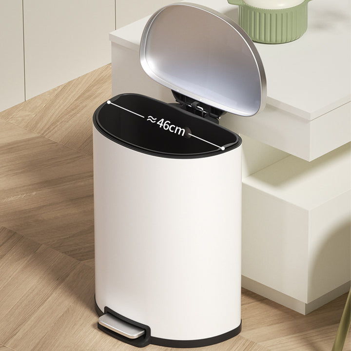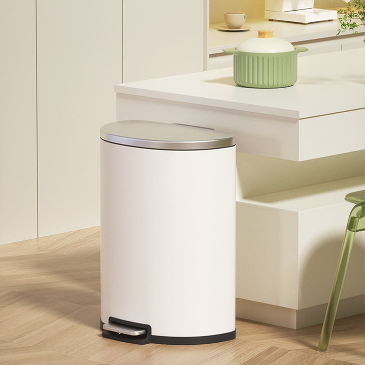 [Easy Cleaning & Modern Design] This stainless steel trash can is rust-resistant and easy to clean with a damp cloth. This trash bin has a silver sheen with a sleek modern look that easily matches any decor