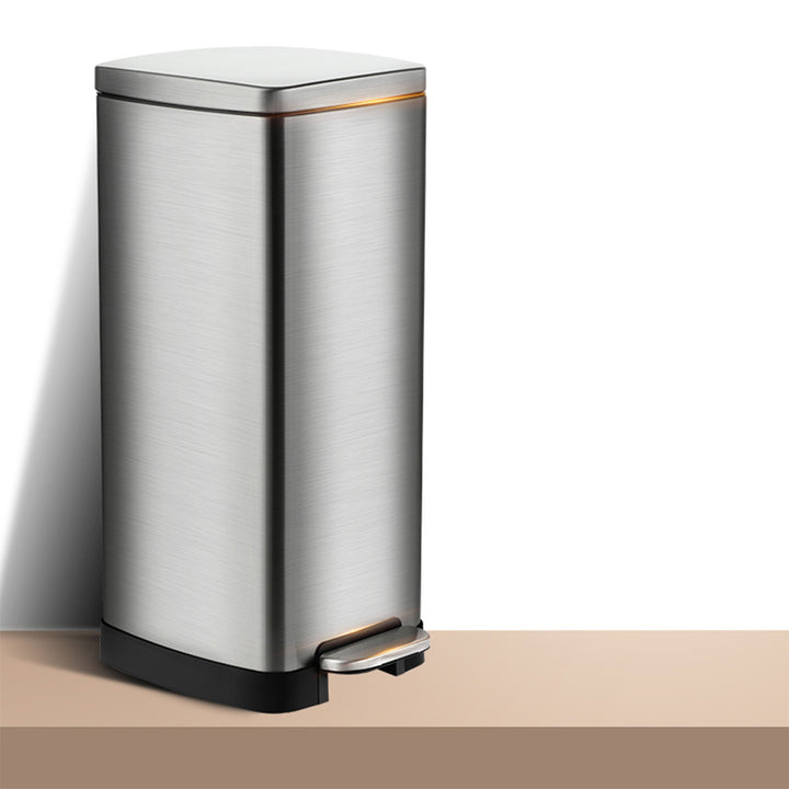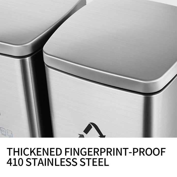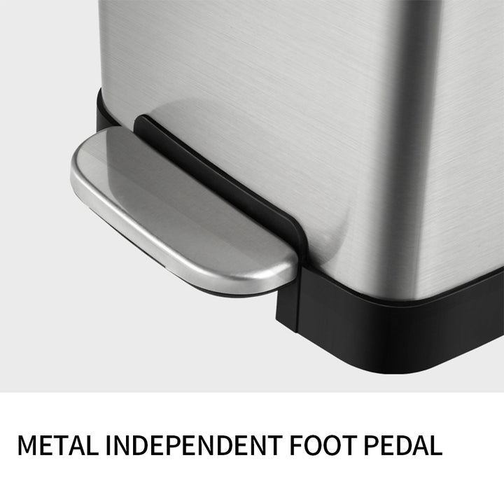 [Quality Stainless Steel] Made from stainless steel, this trash can is rust-resistant and easy to clean. It adds a stylish modern touch to any kitchen