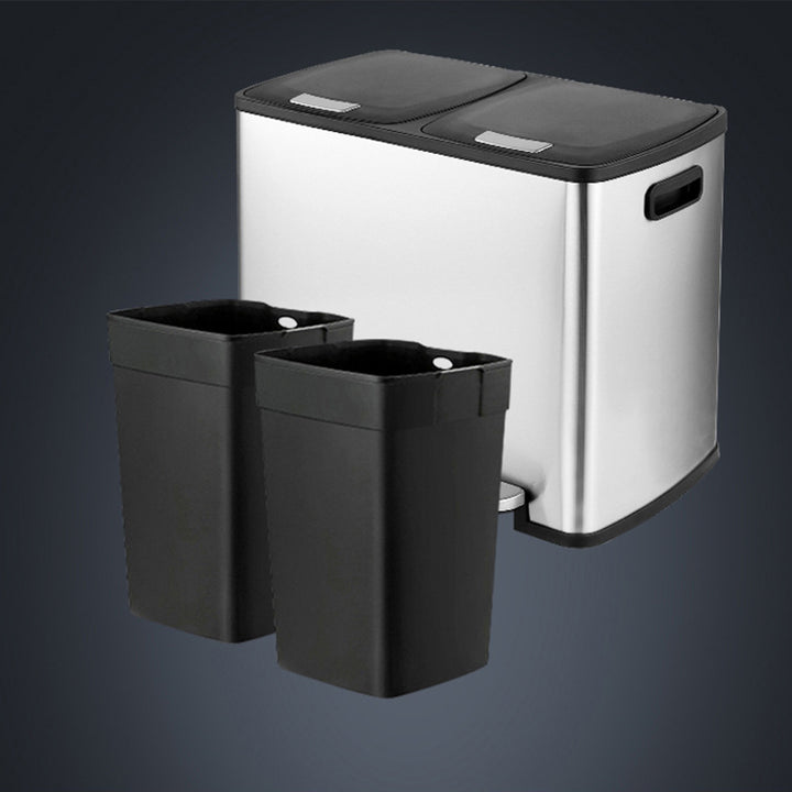 [Removable Inner Bucket] 2 plastic inner buckets with handles can be lifted out, so you can dispose of the recyclables or clean spills easily