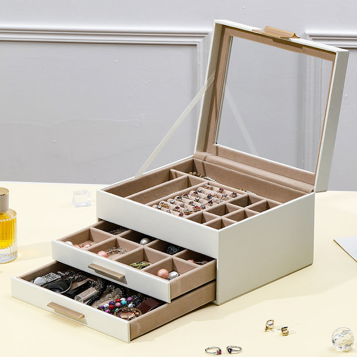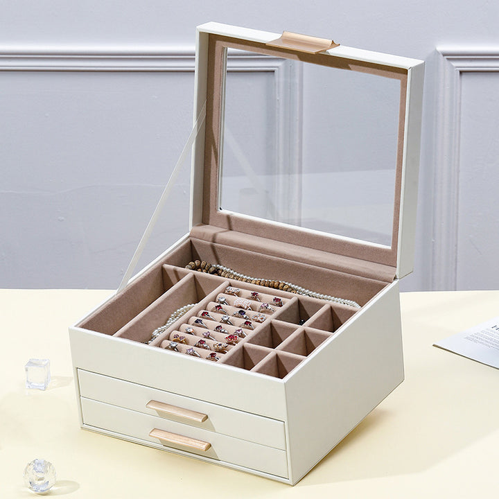 Usajoyen 2-Layer Jewelry Box with Glass Lid, 1 Drawer