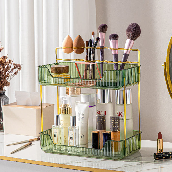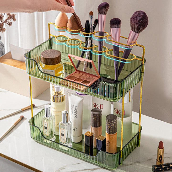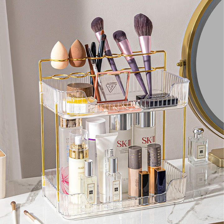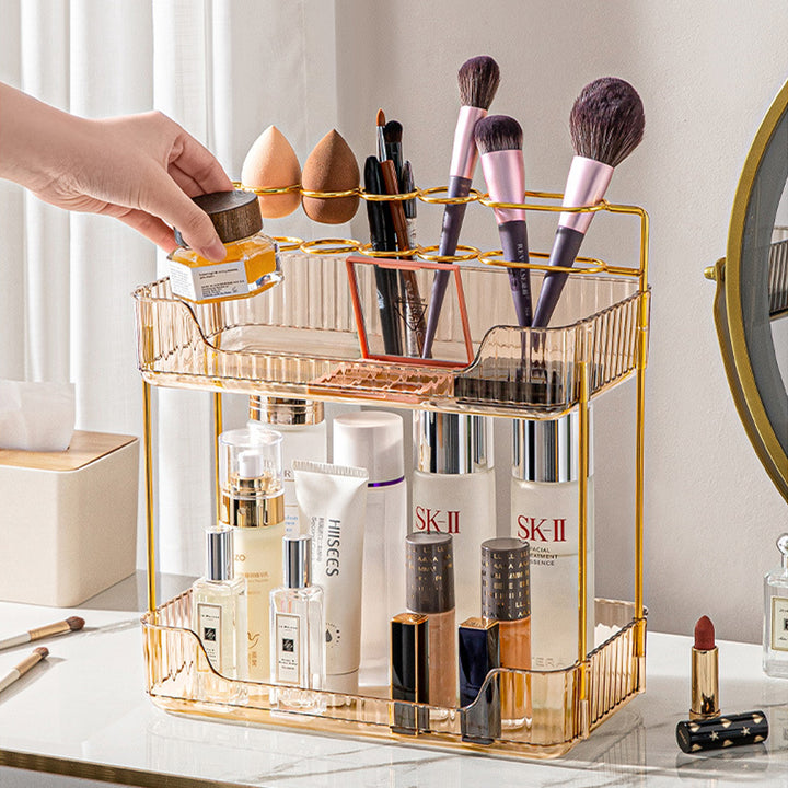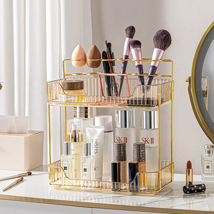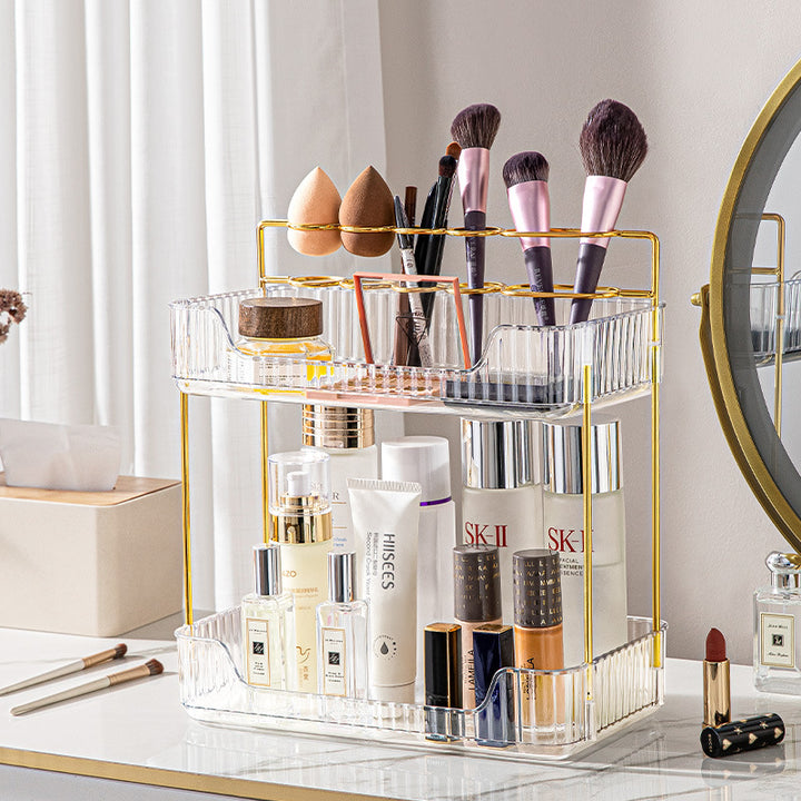 [Space-Efficient] The 2-tier storage organizer optimizes vertical space, making it ideal for storing a variety of items such as makeup, beauty tools, and jewelry. It offers a solution that is both spacious and space-saving