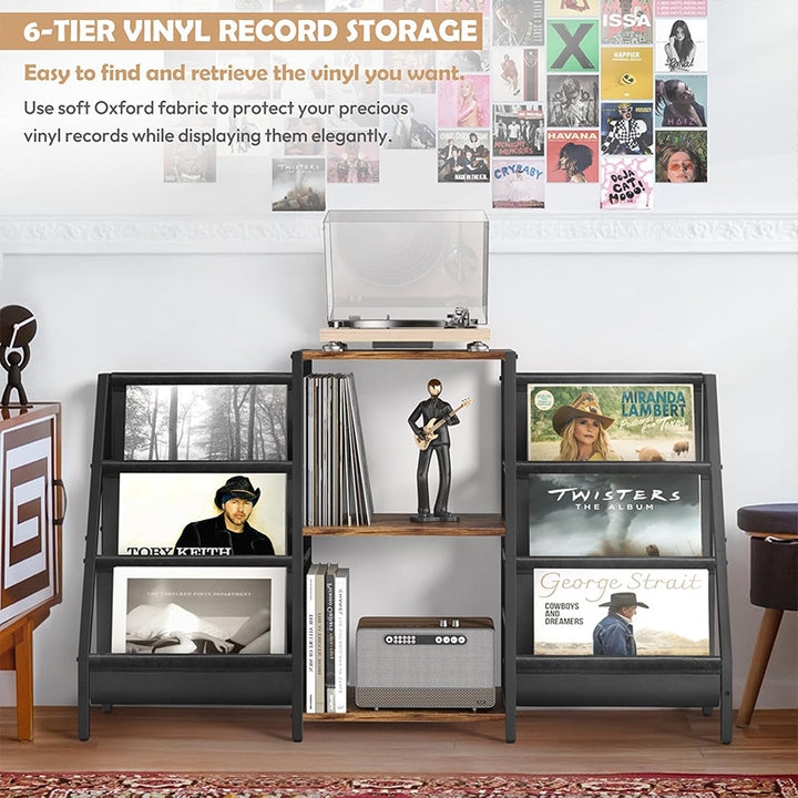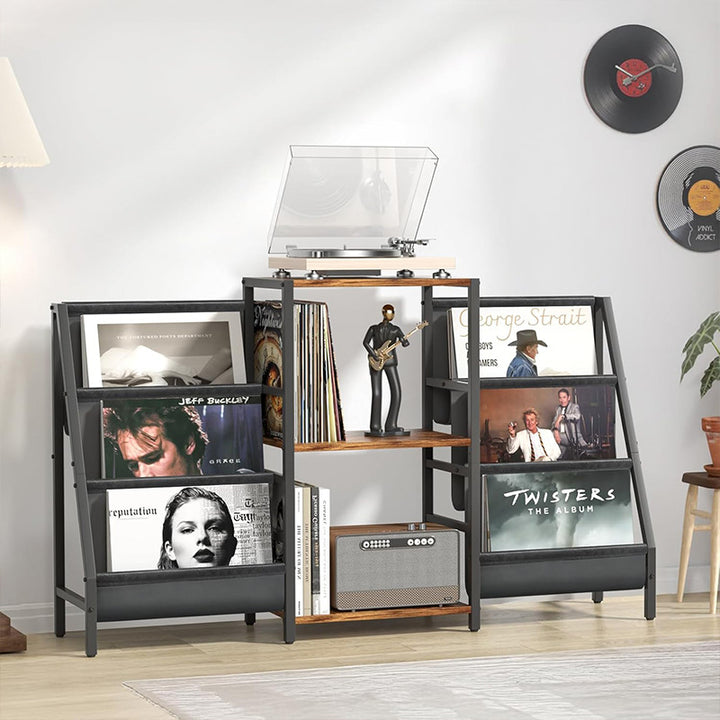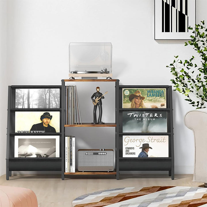【SHOWCASE YOUR FAVORITES】With a 3-tier display rack on the side, this living room table lets you showcase your favorite albums while making it easier to find records, creating an immersive vinyl library experience