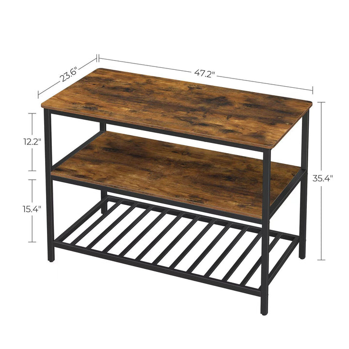 [3-Tier Storage] Place a flower vase or a tea set on the top, kitchen appliances on the middle shelf, and storage boxes with bakeware on the lower grid shelf—everything is nicely organized on this 3-tier Island table with easy access