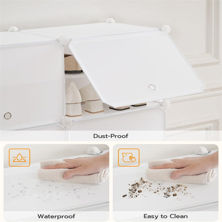 [Robust and Secure] Crafted with premium connectors, durable plastic panels, and strong steel wire, each slot of this shoe storage cabinet holds up to 11 lb. The provided anti-tip kit ensures safe use in living rooms or bedrooms