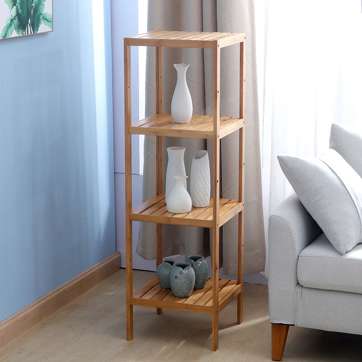 [What You Get] A 4-tier bamboo narrow shelving unit adds storage space to your home while taking up a little floor space