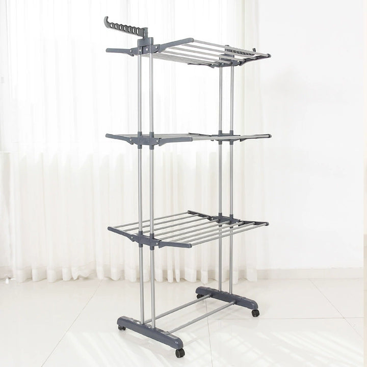 [Sturdy and Durable] This clothes airer is made from heavy-duty stainless steel and thick plastic, with reinforced double rods on both sides. It's sturdier than your average drying rack and boasts a longer lifespan, capable of supporting up to 77 lb