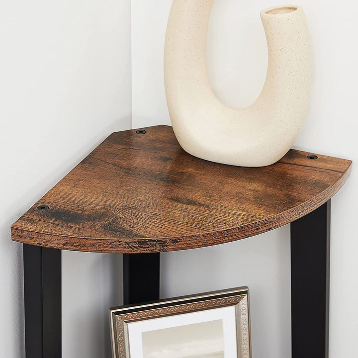 [Stability, Checked] With a 3-legged structure (one has an adjustable foot), this corner shelf unit can stand stably on your floor and fits well against the wall; an anti-tip fit ensures safe use