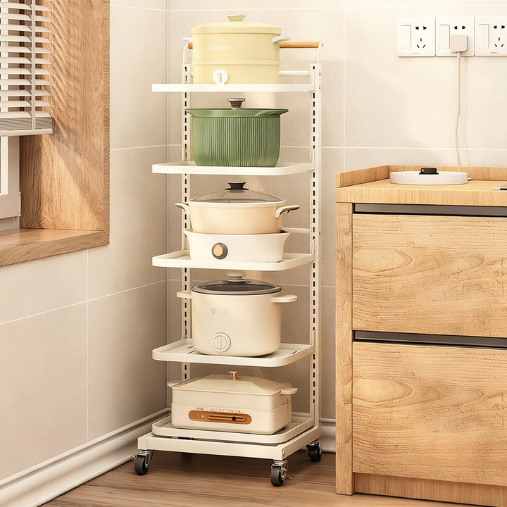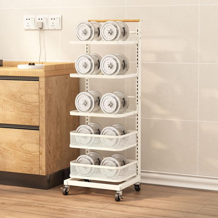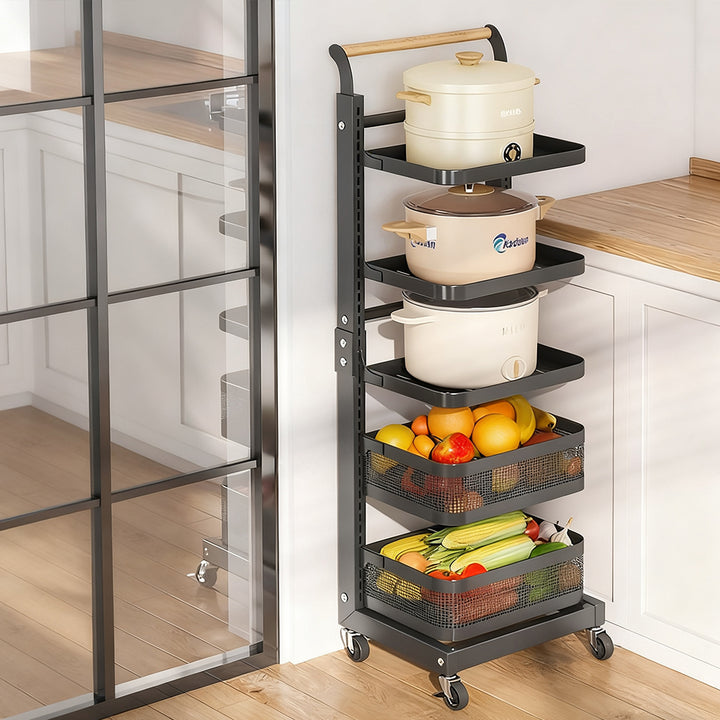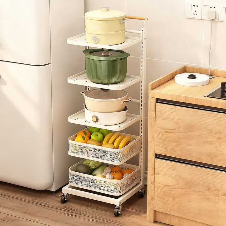 [Flexible and Breathable Baskets] The spacing between the baskets can be freely adjusted to fit your needs, accommodating seasoning containers of various heights. The breathable design ensures proper airflow, preventing vegetables and fruits from spoiling