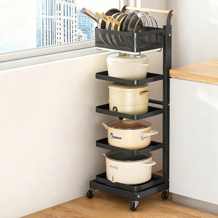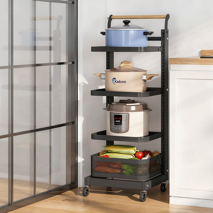 [4-Tier Storage Cart] Sized at 15.9″D x 5.3″W x 35.7″H, this 4-tier rolling storage cart offers plenty of space for kitchen implements and snacks. It helps you organize your daily things, making your rooms look neat and elegant