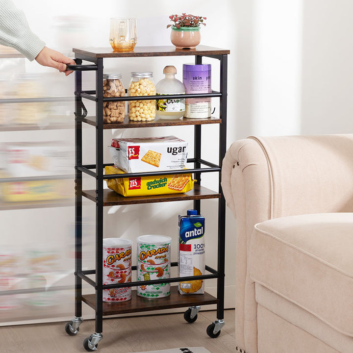 【STURDY AND DURABLE】Crafted with robust steel and quality particleboard, this slim storage cart is durable for years to come
