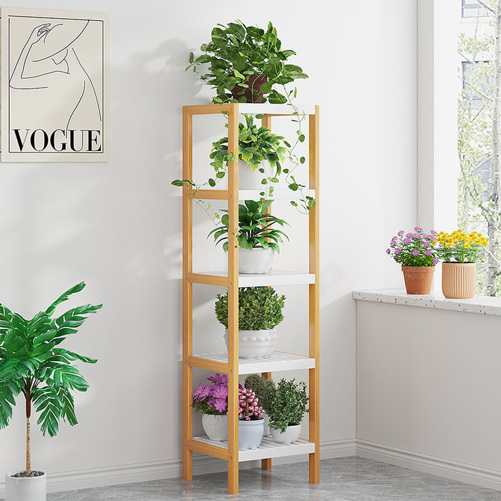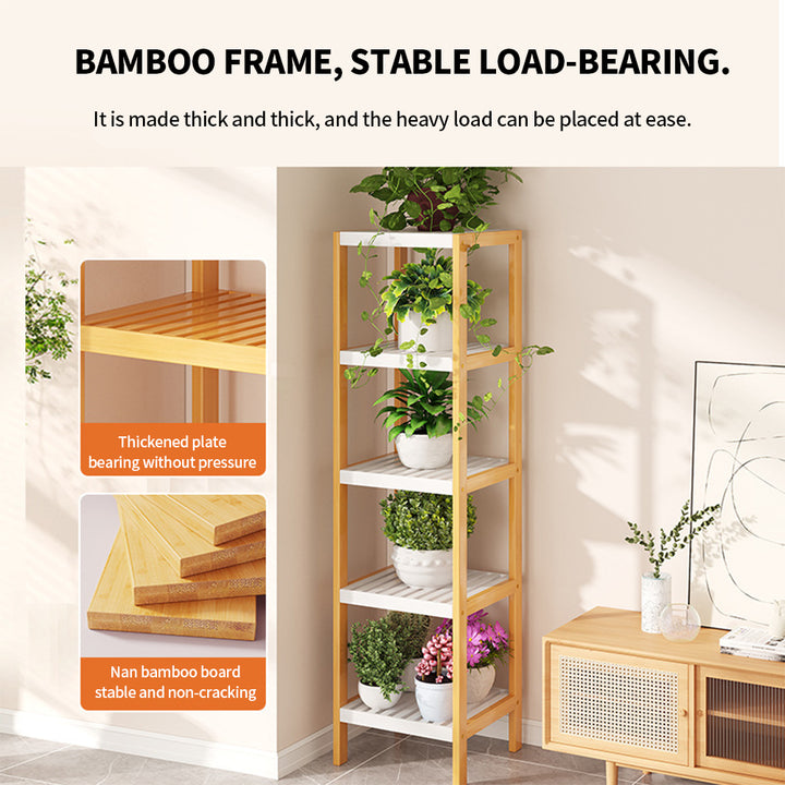 [What You Get] A 5-tier bamboo narrow shelving unit adds storage space to your home while taking up a little floor space