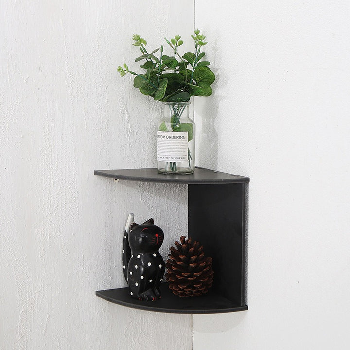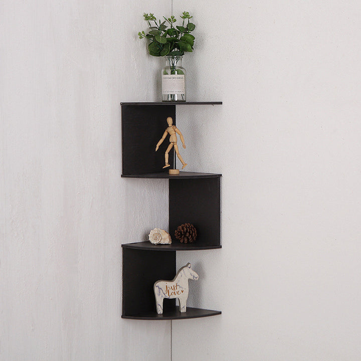 [Modern Design] With its zigzag design and heather greige curved shelves, this wall-mounted corner shelf exudes a charming rustic touch to enhance your living room, bathroom, and home office