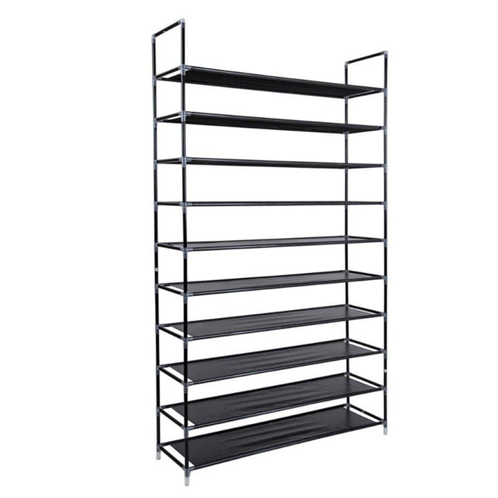 This Usajoyen 10-tier Shoe Rack is designed to provide a great storage solution for your collection of favorite footwear. It is constructed out of metal pipes, non-woven fabrics tiers and plastic connectors, so it can hold numerous pairs of shoes. This innovative, lightweight space saving shoe rack can be placed in a cubby closet, mudroom or busy entryway to keep shoes or accessories accessible.