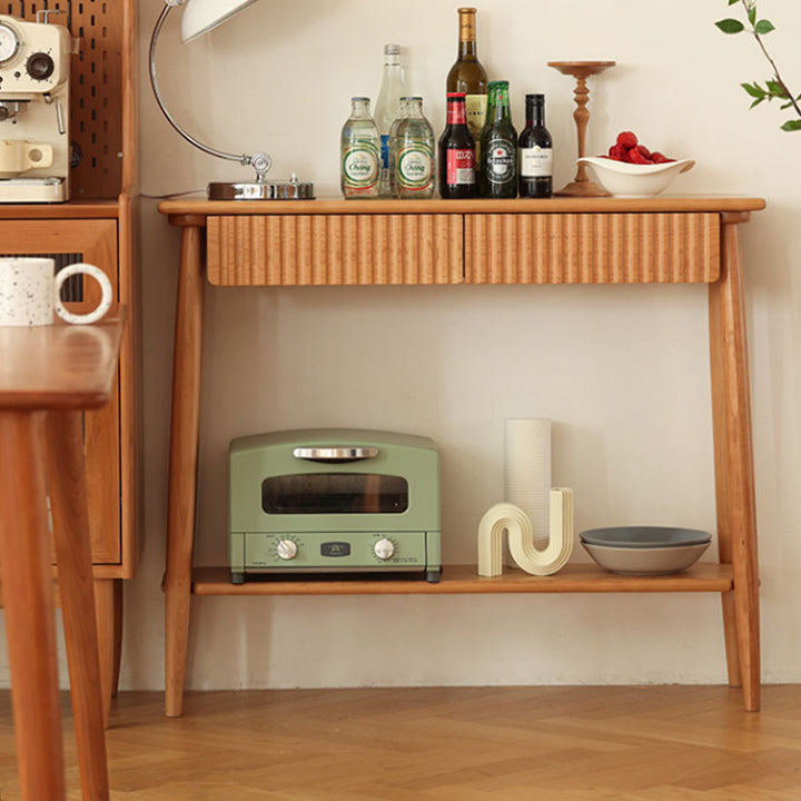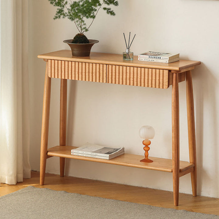 【STORAGE APLENTY】Keep your space tidy with this narrow entryway table. It features a spacious tabletop for frequently used items or decor, 2 large drawers for personal items, and an open shelf for shoes or storage baskets