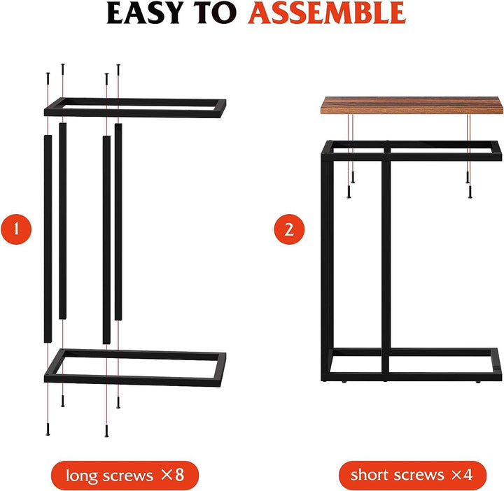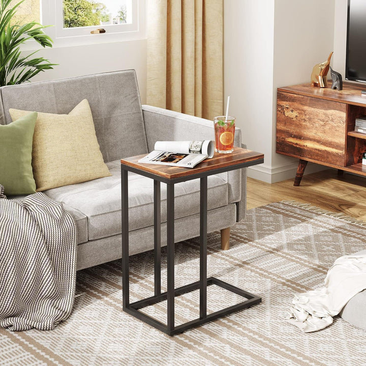 [C Shape Table]: The unique C-shaped side table have rustic brown boards and Black metal frame, Item dimensions 11.8”D x 15.7”W x 27.5”H