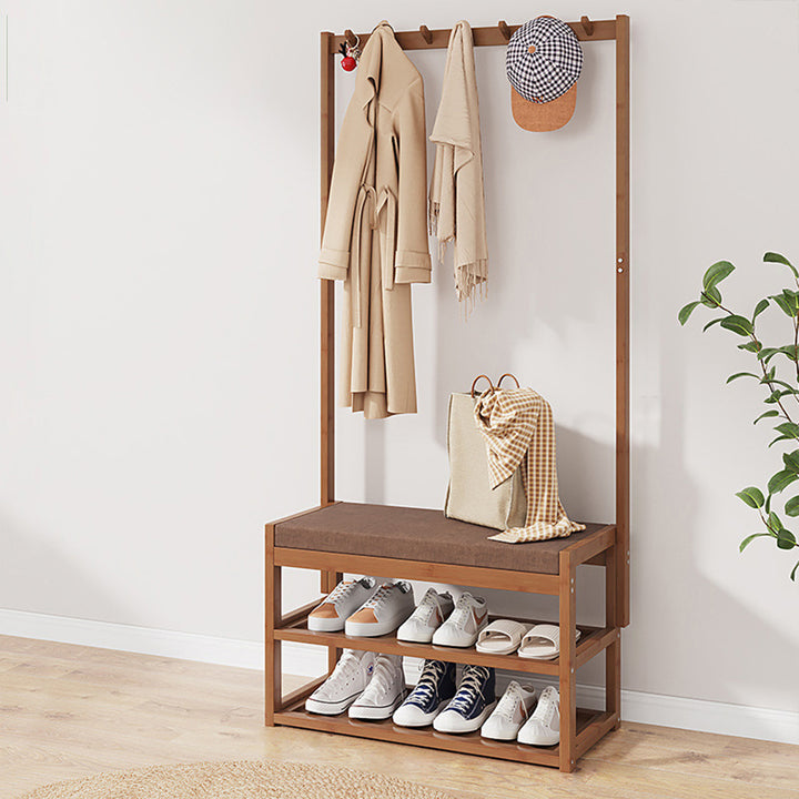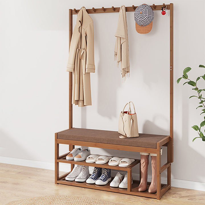 [3-in-1 Coat Rack] Hooks for your coats and bags, a shoe bench for you to change shoes, and a shoe rack to keep your shoes in order—this freestanding coat rack helps tidy up your entryway while keeping everything easy to access