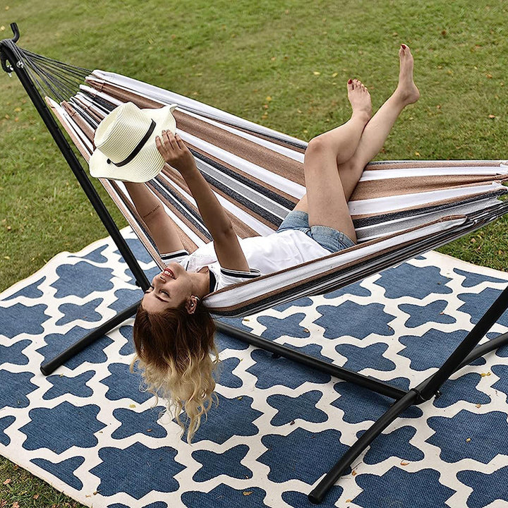 [Thick, Comfortable, and Durable Fabric] Made of 380 g/m² cotton-polyester blend, this double hammock is durable and comfortable, offering long-lasting support and enjoyment for you and a partner