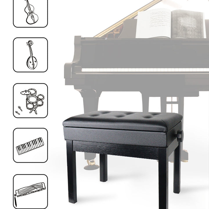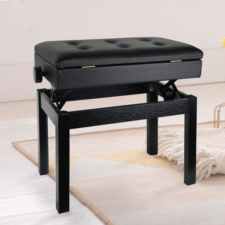 【CONVENIENT STORAGE】Keep your sheet music and books within easy reach with the hidden compartment beneath the seat of this piano chair. It comes with a metal safety hinge that securely holds the lid in the open position, ensuring easy access