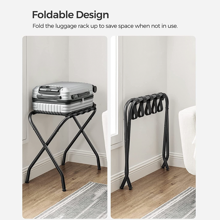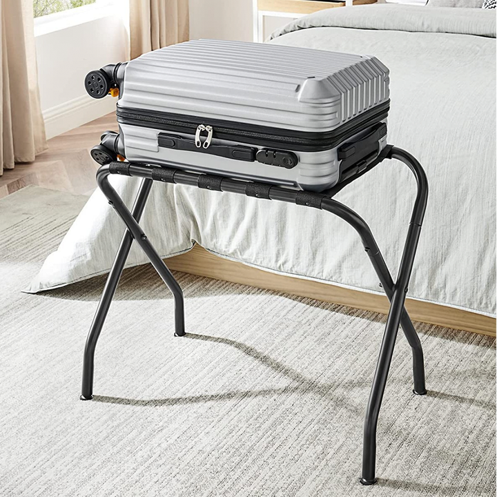 [What You Get] A set of 2 steel luggage racks for guest rooms with a foldable design, adding extra storage while being a nice touch to any room