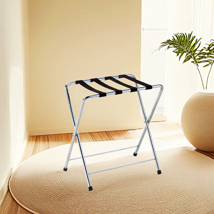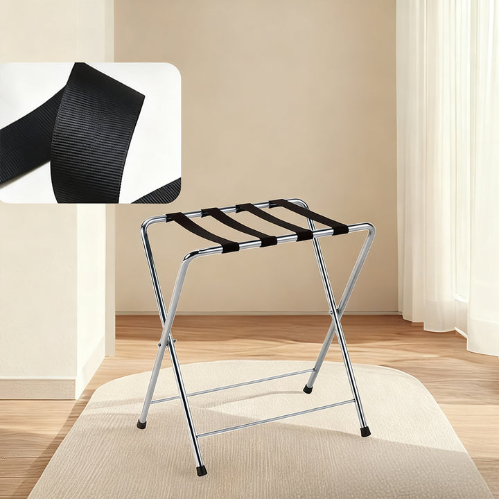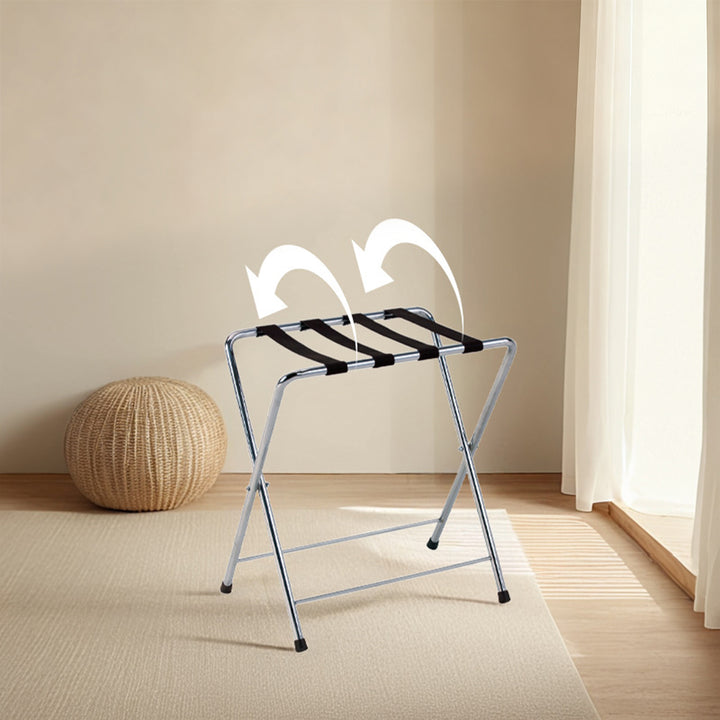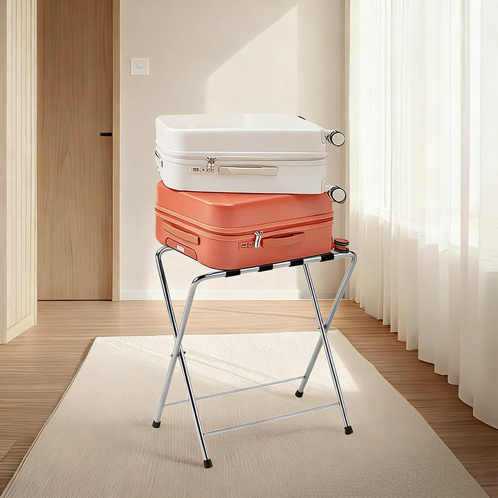 [Wider and Foldable] With a 24.4”L x 16.1”W x 26.6”Hsize that’s wider than similar racks, this luggage rack for guest rooms can accommodate most suitcases.