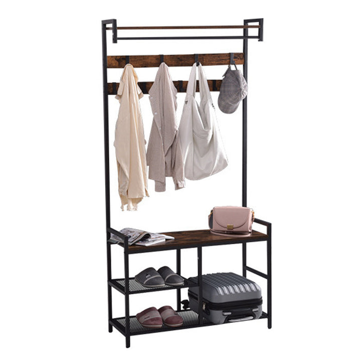 [3-in-1 Coat Rack] Hooks for your coats and bags, a shoe bench for you to change shoes, and a shoe rack to keep your shoes in order—this freestanding coat rack helps tidy up your entryway while keeping everything easy to access