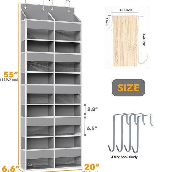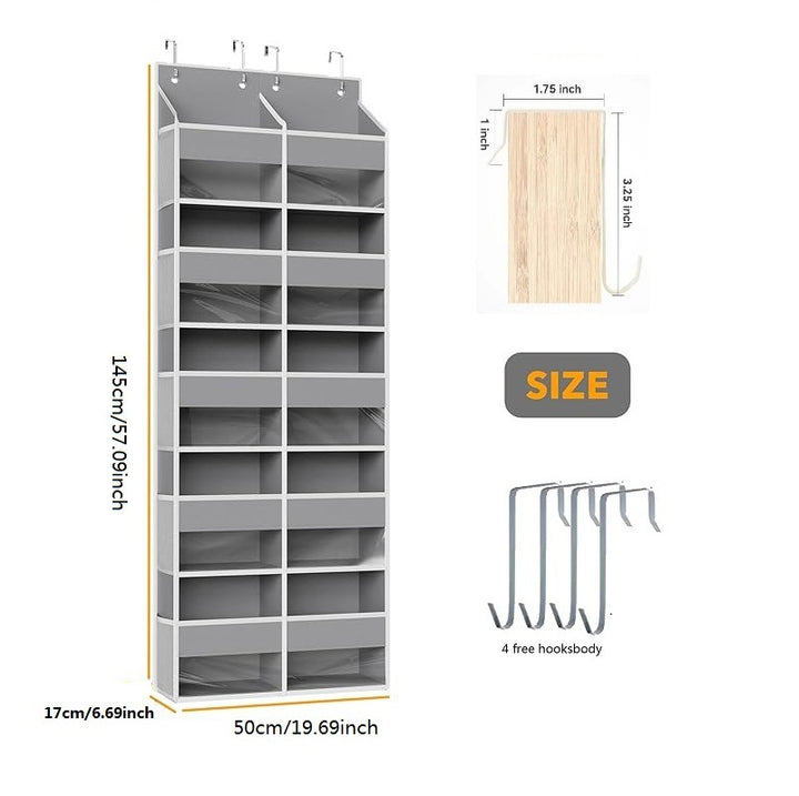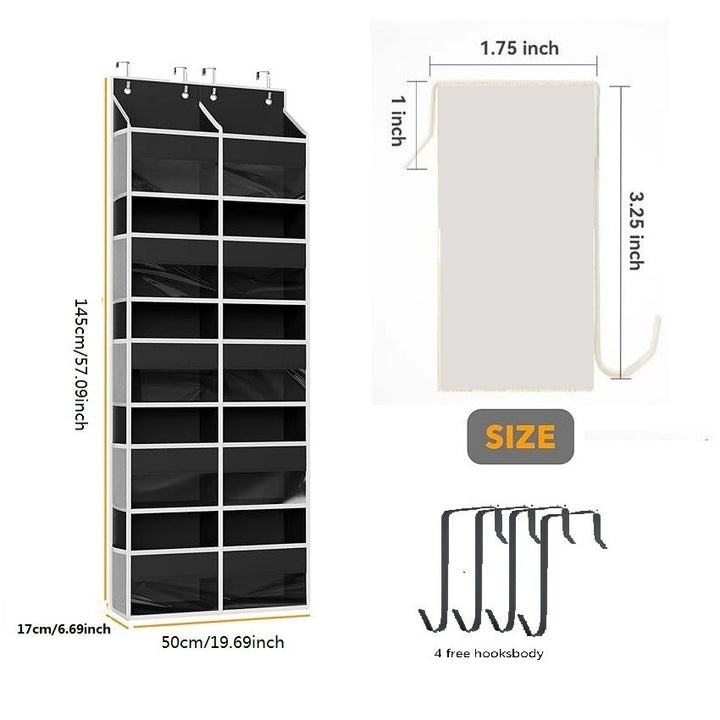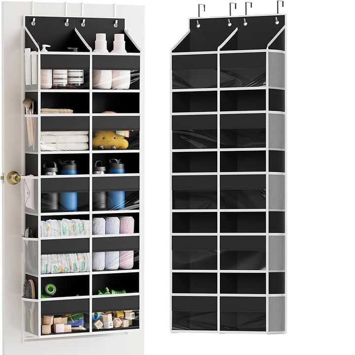 Easy Setup: Assembles in just 30 seconds. Simply hang the hanging organizer on the hooks, place the hooks over the door, and insert the bottom and side reinforcements