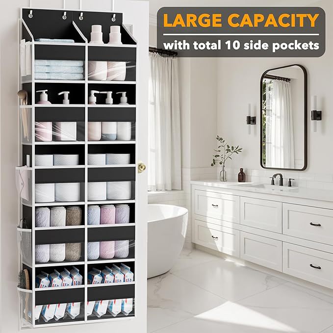 Efficient & Versatile: This over-the-door organizer with 10 compartments maximizes storage space without occupying any floor space. It's perfect for storing bottles and cans in the pantry, toiletries in the bathroom, or clothing in the bedroom