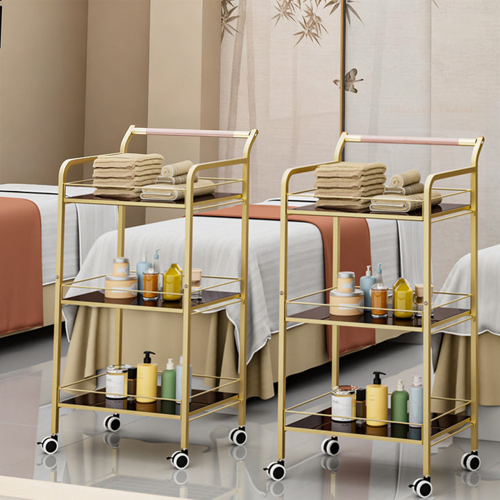 【CHARMING MIRRORED GLASS SHELVES】The mirrored glass shelves on this black bar cart add a touch of sophistication, beautifully reflecting your wine glasses and bottles, bringing casual elegance to your space