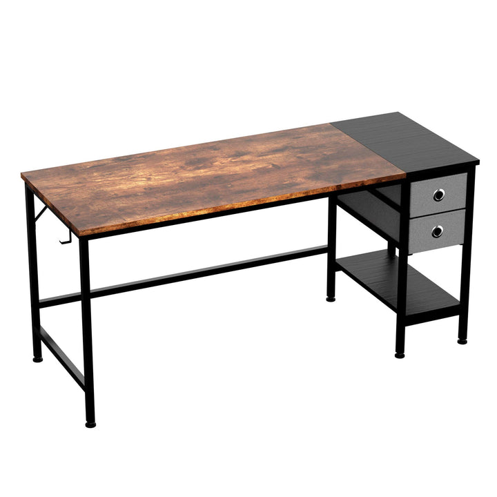 [Chic Industrial Style] The home office desk features a sleek black metal frame and a rustic brown surface. Its contemporary design exudes an industrial vibe, making it a statement piece in any room
