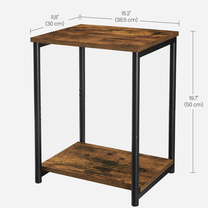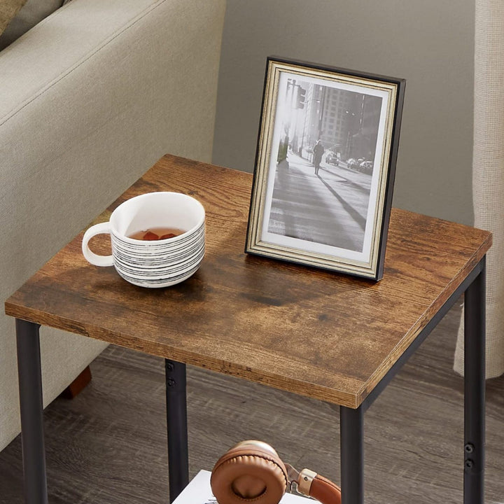 YOUR IDEAL NOOK: Narrow and simple, this side table with its rustic brown surface and iron mesh shelf provides the perfect backdrop for plants, decorations, or books that you want to present in narrow nooks