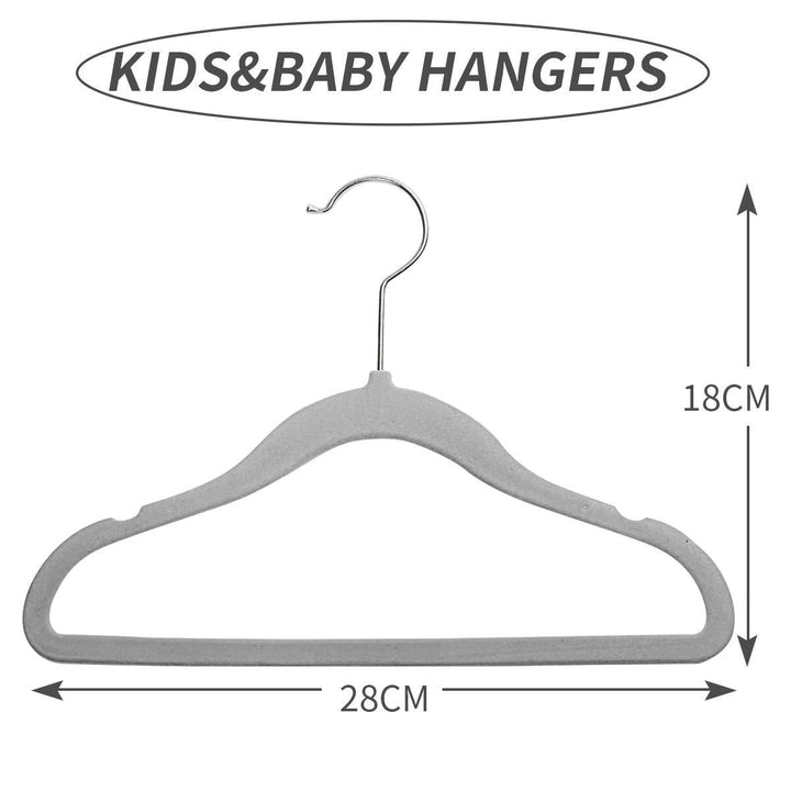 【NON-SLIP SURFACE】The soft velvet surface of these baby hangers prevents clothes from slipping off, ensuring that your little one's outfits stay neatly in place and off the floor