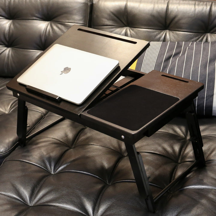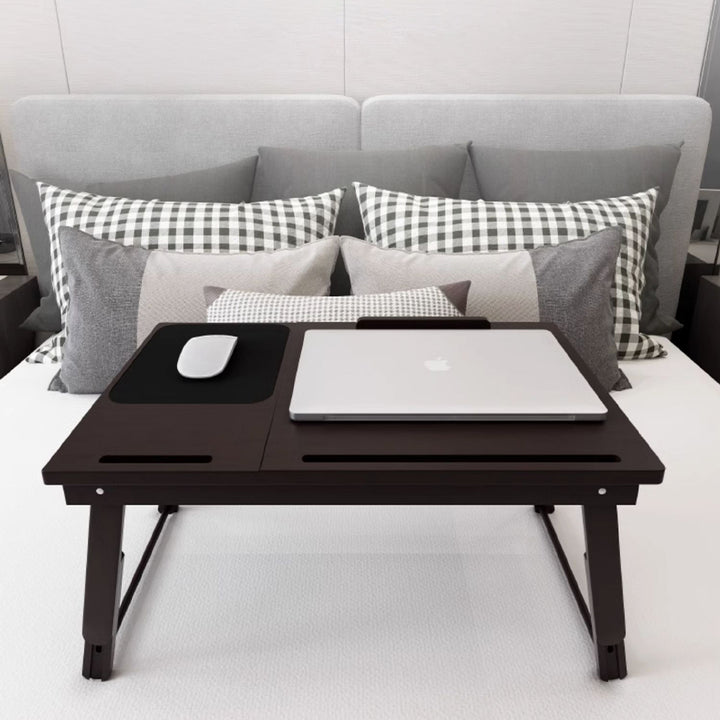 [What You Get]: A foldable, adjustable laptop tray that boasts a timeless rustic dark brown colour, and just like its robust structure, accompanies you for a healthy lifestyle
