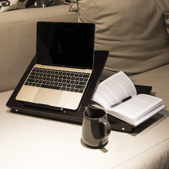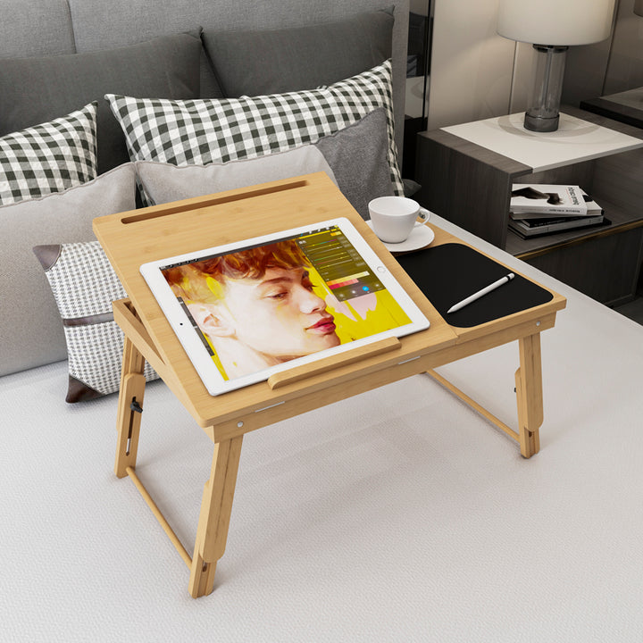 [Work From Bed?]: Of course! But there's at least one essential you need—a lap desk with an adjustable tilt top! Simply lift your laptop on top, adjust the height of the desk legs, select the angle that fits you most from 5 settings, and the work mode is on!