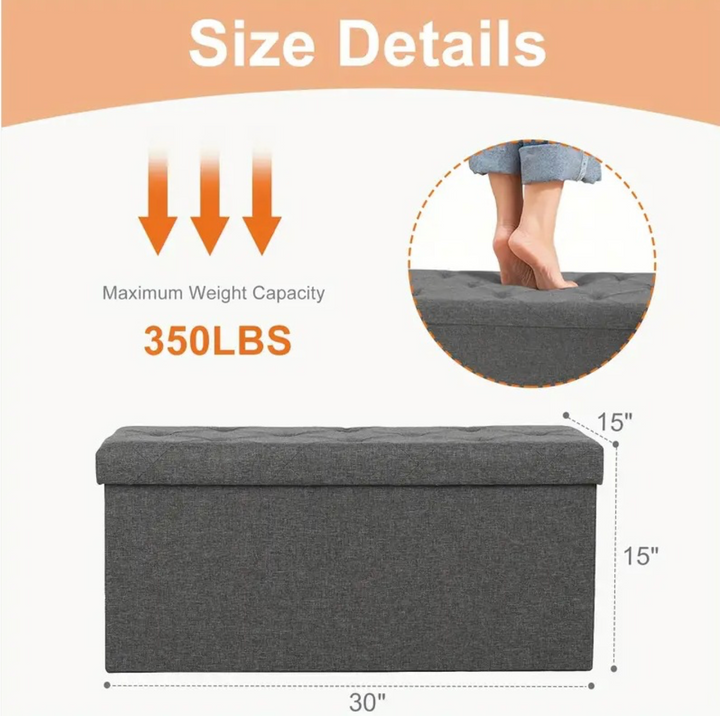[Plenty of Storage Space] This folding ottoman, sized 15”D x 30″W x 15”H (38 x 76 x 38 cm) with a total capacity of 35 gallons, can be used to neatly organize your bed sheets, pillows, blankets, magazines, and more