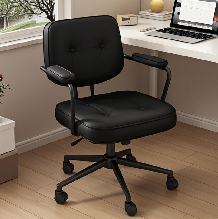 【SLEEK AND EASY TO CLEAN】With its minimalist synthetic leather surface, this office chair not only adds a touch of elegance to your workspace but also simplifies cleaning, requiring only a simple wipe with a cloth