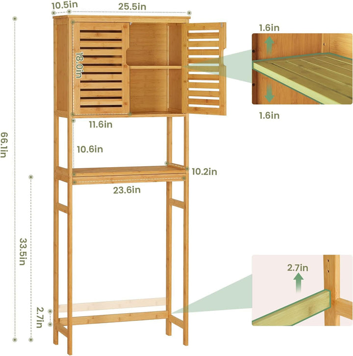 [Optimize Space, Power Up Devices] This tall 3-tier over-the-toilet cabinet with 2 doors keeps essentials organized without taking up much space. Plus, the built-in power strip easily charges your electronic devices for an efficient bathroom routine