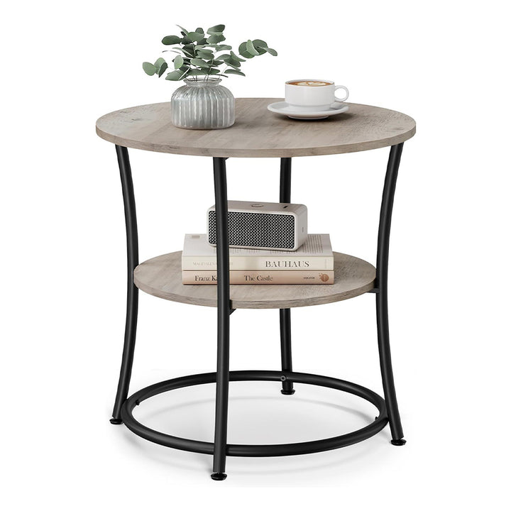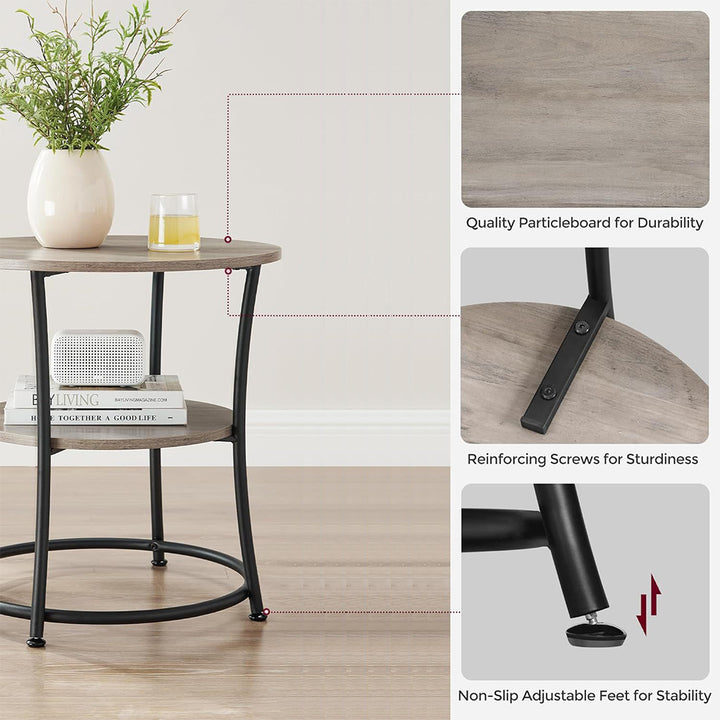 [What You Get] A round side table, 1 storage shelf, adjustable feet for slightly uneven ground, and a simple assembly process