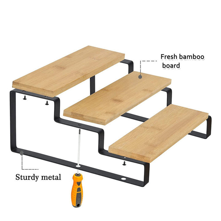 STRENGTH ISN’T LOST: As this spice rack shelf is a daily necessity, our designer has chosen high-strength bamboo boards and offered you quality screws to securely fix them to the metal frame, which gives this spice rack organizer great strength and durability
