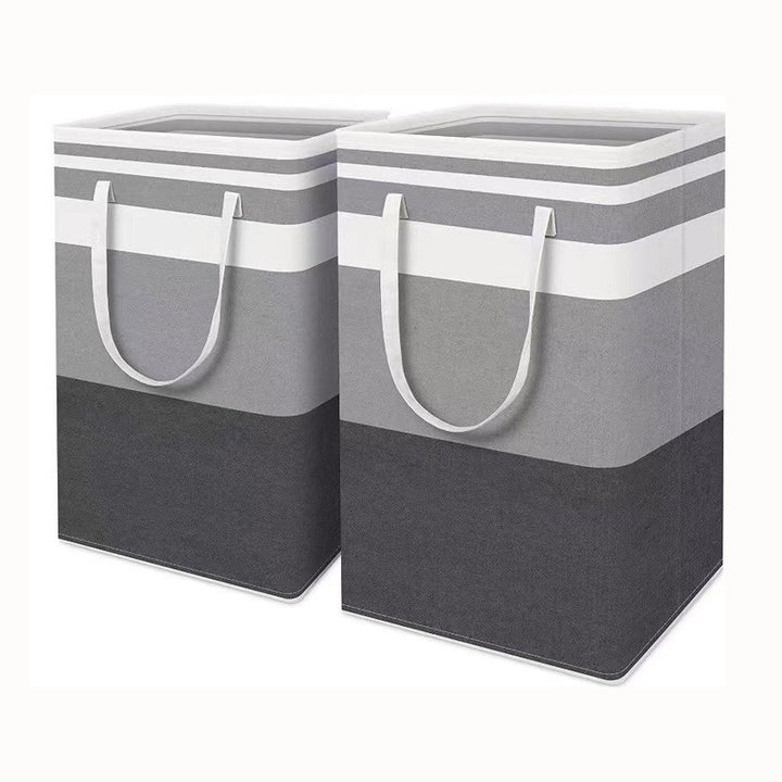 【EFFORTLESS TO FOLD AND TRANSPORT】When not in use, the set of 2 laundry hampers can be neatly folded down. They are equipped with short handles for lifting and long handles for over-the-shoulder carrying, making them easy to transport