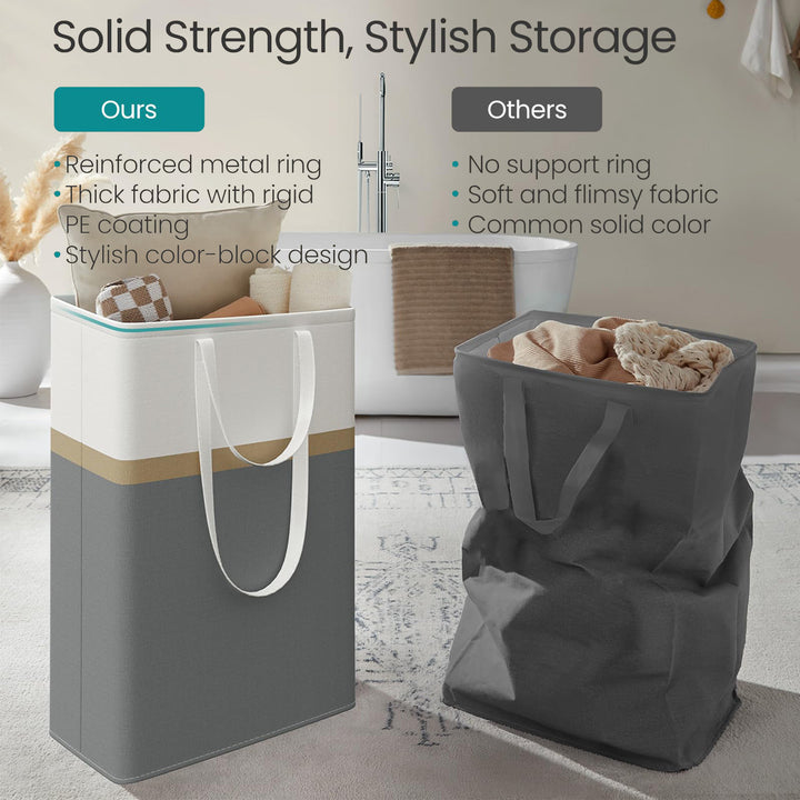 【A STYLISH ADDITION TO ANY ROOM】The color-block design and modern style of this laundry hamper allow it to effortlessly blend into any home decor