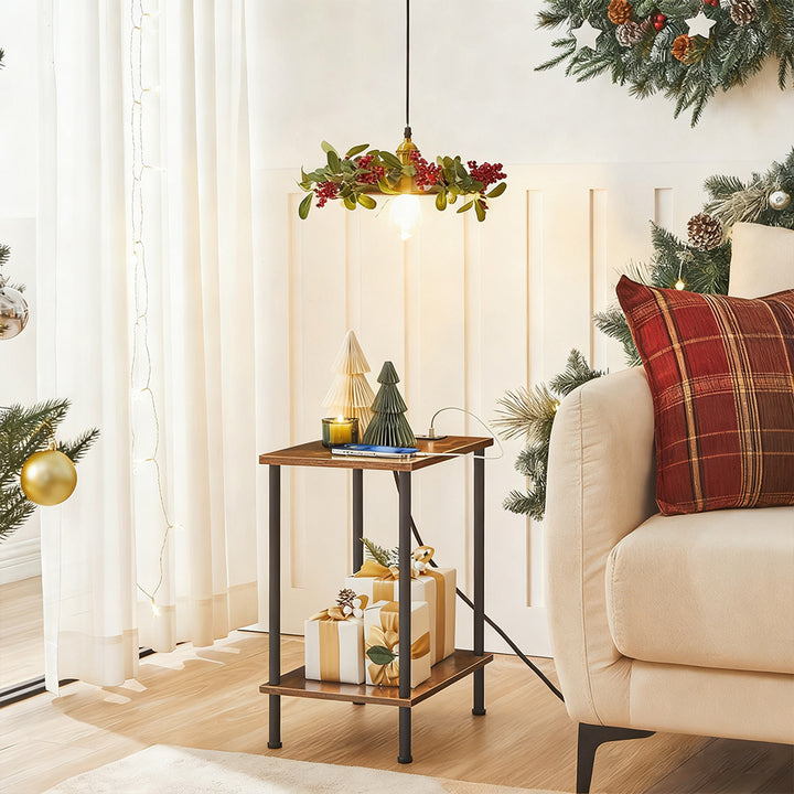 [Streamlined yet Stunning] Giving an industrial look to any space, from the living room to bedroom, this set of 2 side tables has a clean, understated design while making an impressive statement with its warm rustic brown tone and matte black steel accent
