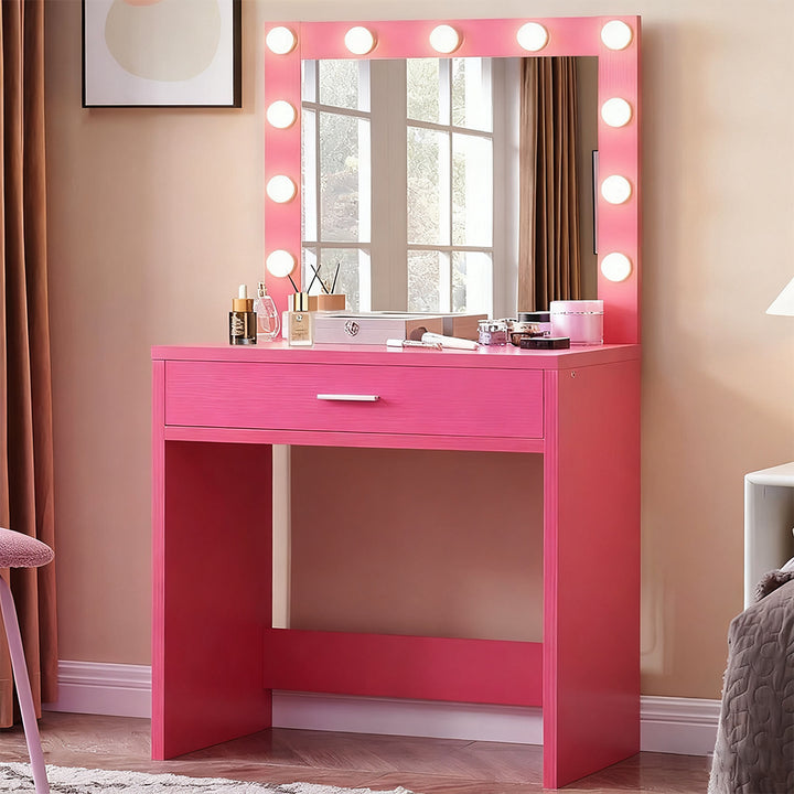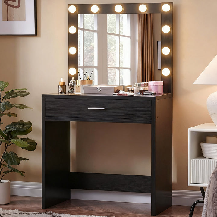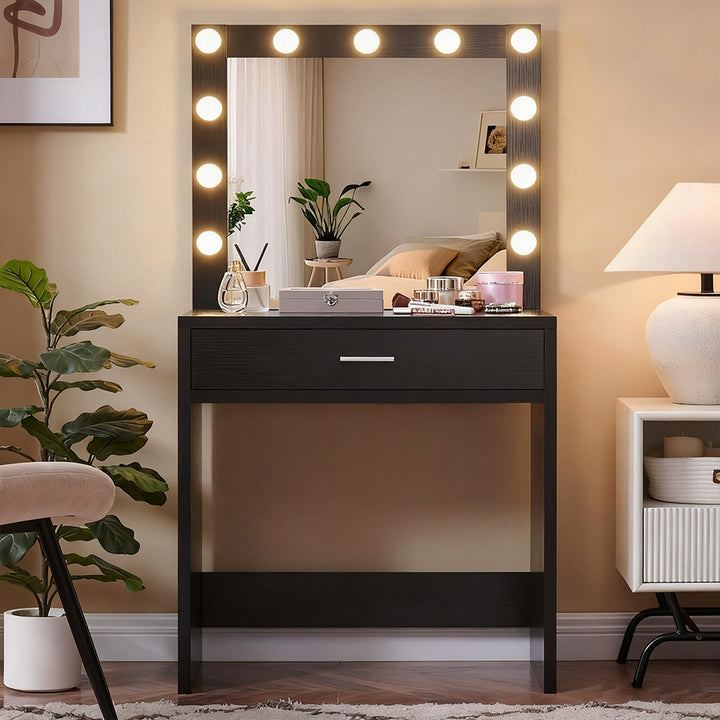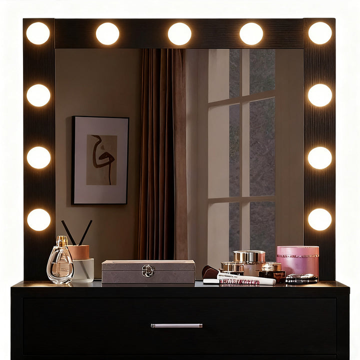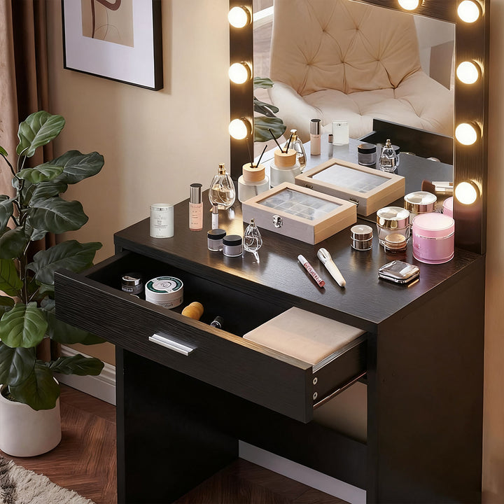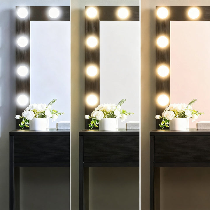【VANITY MIRROR WITH LIGHTS】Enhance your beauty routine with the vanity mirror of this makeup vanity surrounded by 9 adjustable light bulbs. Customize the brightness to suit your needs and achieve flawless makeup application every time