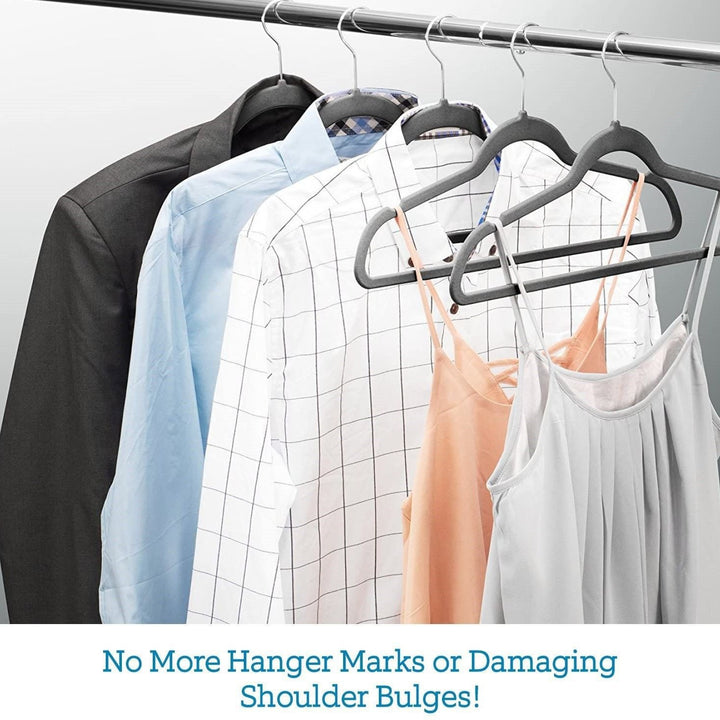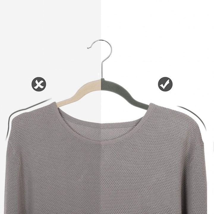 [Anti-Slip Hangers] The velvet surface on these hangers is gentle on delicate fabrics and helps prevent slipping and creasing, ensuring even silky clothes stay securely in place and maintain a wrinkle-free appearance
