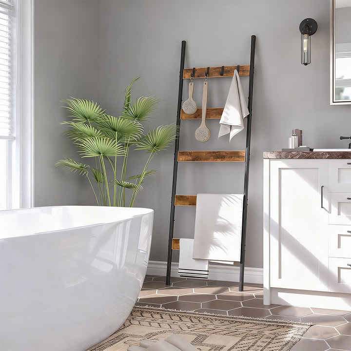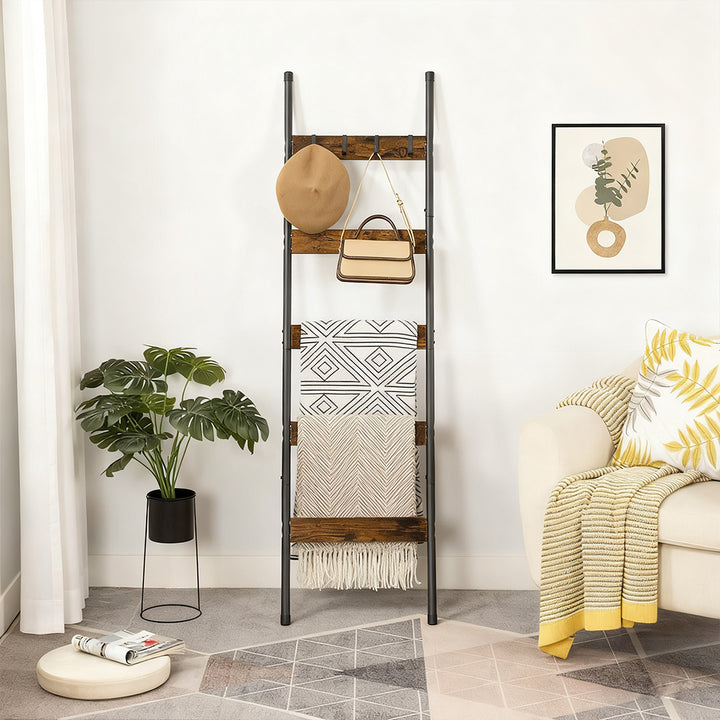 [Unleash Your Imagination] Looking for an original piece for your room? With the black frame and rustic brown wooden bars, you can display colorful blankets in the living room for a chic touch or hang towels in the bathroom to impress guests