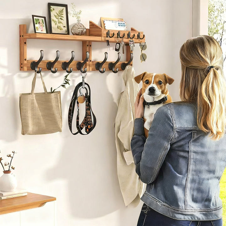 [Versatile Uses] In the entryway for out-the-door essentials, in the living room for decor and plants, in the bedroom for photo frames? This wall-mounted coat rack fits all these purposes nicely